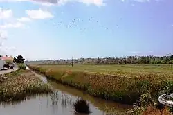 Located along the peninsula of Tróia on the southern margin of the Sado River, the region is characterized by a number of rice fields under cultivation. In addition, its vicinity within the Sado estuary makes the region a habitat of many species of terrestrial and marine birds, including the grey herons, storks and flamingos.