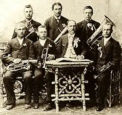 - ^ Other sized brass ensembles, however, are known to have existed before 1870. For example, the Swedish brass sextet—comprising a soprano cornet (in E♭), cornet (in B♭), alto horn (in E♭), tenor horn (in B♭), valve trombone (in B♭), and tuba (in C)—was popular in Sweden and Norway, and may have been a model for the Finnish torviseitsikko. Moreover, in Finland during the 1850s and 1860s, amateur brass quartets, quintets, and sextets had been common.[2]
