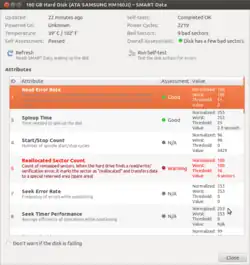 Impending failure on hard disk drives is estimable using S.M.A.R.T. diagnostic data that includes the hours of operation and the count of spin-ups, though its reliability is disputed.[21]