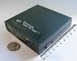160 GB SDLT tape cartridge, an example of off-line storage. When used within a robotic tape library, it is classified as tertiary storage instead.