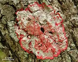 - ^ a b Edwards, Howell G.M.; de Oliveira, Luiz F.C.; Seaward, Mark R.D. (2005). "FT-Raman spectroscopy of the Christmas wreath lichen, Cryptothecia rubrocincta (Ehrenb.:Fr.) Thor". The Lichenologist. 37 (2): 181–189. doi:10.1017/S0024282905014611.