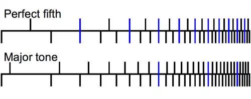 - Frequency ratios: When harmonic timbres are played in one of the just intonations (or a sufficiently close approximation thereof), ratios of higher simple numbers are more dissonant than lower ones.[31] However, the farther the timbre departs from the harmonic series, and/or the farther than the tuning departs from a Just Intonation, the less the "frequency ratio" rule applies.[32]