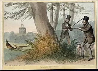 His standing as a former Tory minister's son made Normanby valuable to the Whigs, and they hoped to return him to Parliament in another seat. An attempt was made to have him put in at St Ives at a by-election in 1821, but support proved to be lacking, and Normanby withdrew without contesting the seat. The illness and death of William Plumer in the beginning of 1822 allowed him to take his seat in February for Higham Ferrers, a pocket borough of the Whig grandee Earl Fitzwilliam.[5] He made a considerable reputation by political pamphlets and by his speeches in the house. He was returned for Malton at the general election of 1826,[1] another one of Fitzwilliam's boroughs.[5] He was already known as a writer of romantic tales, The English in Italy (1825); in the same year he made his appearance as a novelist with Matilda, and in 1828 he produced another novel, Yes and No.[1] He declined to be nominated again for Malton in 1830, anticipating the imminent death of his father, and was thus out of Parliament when Lord Grey formed a government in November 1830. Normanby hoped for employment by the foreign office, but none was forthcoming. Through Lord Durham, Normanby solicited a writ in acceleration from Grey in early 1831, which would have brought him up to the House of Lords before his father's death; but Normanby succeeded to the Earldom of Mulgrave on his father's death in April, rendering it moot.[5]