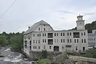A portion of mill complex, consisting of five buildings between Mill Street and the river, was first listed on the National Register of Historic Places in 1975.[1][3] This listing was expanded in 1985 to add buildings on the south side of Mill Street.[2]