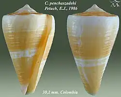1. ^ a b Conus penchaszadehi Petuch, 1986. Retrieved through: World Register of Marine Species on 27 March 2010.