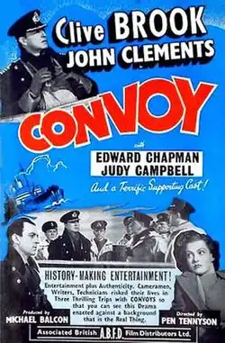 Convoy is a 1940 British war film, produced by Ealing Studios, directed by Pen Tennyson and starring Clive Brook, John Clements and Edward Chapman.[2] Convoy was Tennyson's last film before he was killed in an aircraft crash, while serving in the Royal Navy.[3]