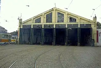 In 1868, the first wooden shed—designed to house 24 wagons along with horse stables—was built in the center of Timișoara's Fabric district, near the Hydroelectric Plant.[5] Due to urban planning changes, it was relocated to its current site between 1873 and 1874.[6] By 1876, an existing building at the new location was adapted to serve as the tram company's office and the residence of its director. A shed with five tracks was also constructed in the courtyard, along with a blacksmith's workshop for horse shoeing and additional stables. Following the introduction of the electric tram in 1899, the facility began to be restructured to meet the new operational requirements. Between 1898 and 1899, a building complex known as the "Central Electric Establishment" was constructed.[7] By the end of the 19th century, it included the administration building, a wagon depot with a 25-wagon capacity, repair workshops, and a warehouse located at the rear of the depot.[6] In 1909, a second depot—matching the size and design of the first—was built adjacent to the original, and the wagon repair workshop was expanded at the same time.[4]
