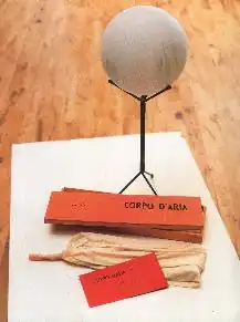 Corpo d'aria ("Body of Air"; plural Corpi d'aria) is an artist's multiple by the Italian artist Piero Manzoni. Manufactured between October 1959 and March 1960, the pieces are a box, a tripod base, a deflated balloon and a mouthpiece. 45 copies were made and sold at 30,000 lire each. Originally, any buyer could ask Manzoni to inflate the balloon himself, but would be charged an extra Deutschmark for every litre of air expanded. When fully expanded, the balloons measured 80 cm in diameter.[1]
