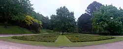 The Council has recognised that the conservatory "is in need of refurbishment" and that "options for this will be realistically addressed during 2008".[2] Although £40,000 of Heritage Lottery Funding was allocated to the upkeep of the conservatory it is estimated that the cost to refurbish the building would be in the region of £1.5m.[2] The conservatory sits alongside an inhabited aviary, which is also proximate to one of two porter's lodges at the West Park Road and East Park Road entrances.[2] A magnificent wide avenue, the broad walk, is flanked by lime trees going east to west.