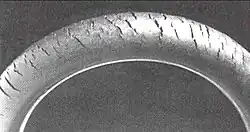 In the chemical industry, hydrogen grooving is the corrosion of piping at grooves created by the interaction of a corrosive agent, corroded pipe constituents, and hydrogen gas bubbles.[11] For example, when sulfuric acid (H2SO4) flows through steel pipes, the iron in the steel reacts with the acid to form a passivation coating of iron sulfate (FeSO4) and hydrogen gas (H2). The iron sulfate coating will protect the steel from further reaction; however, if hydrogen bubbles contact this coating, it will be removed. Thus, a groove can be formed by a travelling bubble, exposing more steel to the acid, causing a vicious cycle. The grooving is exacerbated by the tendency of subsequent bubbles to follow the same path.