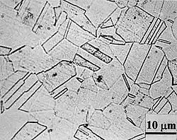 Sensitized metallic microstructure, showing wider intergranular boundaries
