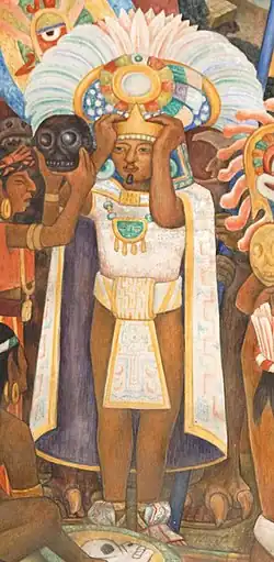 ![]() Detail of the mural "Civilización mixteco-zapoteca" by Diego Rivera where there is a Coquitao with possible features similar to Cosijoeza. | |