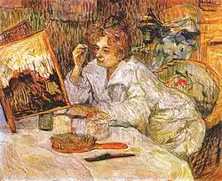 An 1889 Henri de Toulouse-Lautrec painting of a woman applying facial cosmetics