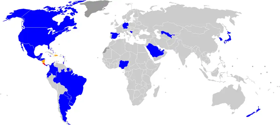 Map of the countries that have played at least one match against Costa Rica so far in the decade: