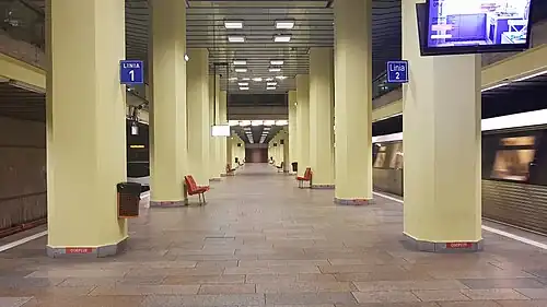 Costin Georgian is a metro station in Bucharest; it was opened on 28 December 1981 as part of the second phase of Line 1 between Timpuri Noi and Republica.[1] Formerly named Muncii after the eponymous boulevard that run just north (now Basarabia Blvd.), the station was chosen in 1992 to honor the late engineer Costin Georgian, General Manager of the Metro operator Metrorex, after his sudden death on 25 August 1992, the eve of the Basarab station opening day.[2]