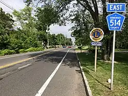 CR 514 continues east into Hillsborough Township in Somerset County, passing farms before continuing into more wooded areas with some agriculture and residences. The road enters woodland as it reaches an intersection of River Road (CR 567) at Neshanic. The route passes through more areas of farms and woods before heading into wooded areas of residential development and coming to the intersection of East Mountain Road (CR 677). At this point, CR 514 runs through woodland before passing more residential subdivisions and widening to four lanes as it comes to the intersection of Marshall Road (CR 625). The route passes north of Hillsborough High School and curves to the northeast, passing to the northwest of a park and ride lot before coming to the intersection of U.S. Route 206. At this point, the roadway turns east again and narrows back to two lanes. The road passes housing developments to the north and fields to the south, coming to an interchange with U.S. Route 206 Bypass prior to passing over CSX's Trenton Subdivision. The route continues through farms, woods, and homes before reaching the intersection of Schilke Lane (CR 650), at which point CR 514 turns northeast and enters Millstone. The road bypasses the residential neighborhoods of the borough to the north by passing through woodland and fields, turning east and intersects with Somerset Courthouse Road (CR 533 Spur) and Main Street (CR 533).[1][3]