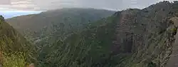 The natural park covers the Cova Crater, the upper valley of the Ribeira da Torre (from Xoxo upstream), the upper valley of the Ribeira do Paul and the Pico da Cruz.[4] The landscape is characterised by the volcanic crater of Cova, the steep cliffs and escarpments that end in the deep river valleys. Its elevation ranges from around 400 m near Xoxo to 1585 m at the Pico da Cruz.[3]