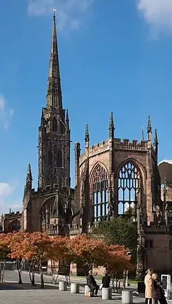 - ^ Historic England. "Ruined Cathedral Church of St Michael, Coventry (1076651)". National Heritage List for England. Retrieved 14 December 2012.