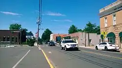 U.S. Route 15 passes through Creedmoor as Durham Avenue, leading north 14 miles (23 km) to Oxford, the Granville County seat, and southwest 16 miles (26 km) to Durham. North Carolina Highway 56 crosses US 15 just west of the center of town. To the east, as Wilton Avenue, it leads 13 miles (21 km) to Franklinton, and to the west, as Lake Road, it leads 2.5 miles (4.0 km) to Interstate 85 and 5 miles (8 km) to the center of Butner. Interstate 85 leads southwest to Durham and northeast 112 miles (180 km) to Petersburg, Virginia.