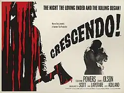 Crescendo is a 1970 British horror psychological thriller film directed by Alan Gibson and starring Stefanie Powers, James Olson, Margaretta Scott, Jane Lapotaire and Joss Ackland.[4] It was made by Hammer Film Productions.
