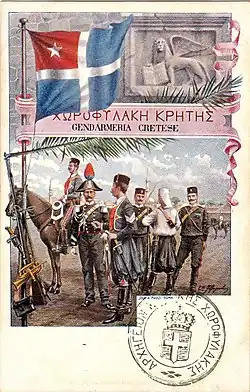 The Cretan Gendarmerie (Greek: Κρητική Χωροφυλακή) was a gendarmerie force created under the Cretan State, after the island of Crete gained autonomy from Ottoman rule in the late 19th century. It later played a major role in the coup that toppled the government of King Constantine in 1916, and also in the World War II Battle of Crete and the Greek Resistance that followed.