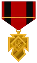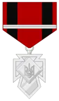 The Cross of Merit (Ukrainian: Хрест Заслуги) was an award of Ukrainian Insurgent Army. It awarded for distinguished services to the state and people of the Ukrainian army. The Order was instituted on January 27, 1944, by the Ukrainian Supreme Liberation Council leaders, Roman Shukhevych and Dmytro Hrytsai.