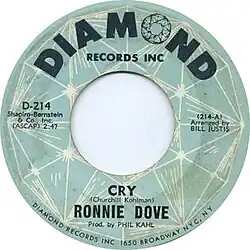"Cry" is a 1951 popular song written by Churchill Kohlman. It was first recorded by Ruth Casey on the Cadillac label.[1] The biggest hit version was recorded in New York City by Johnnie Ray and The Four Lads on October 16, 1951. Singer Ronnie Dove also had a big hit with the song in 1966.