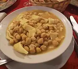 pasta with chickpeas, garlic or leek and laurel. They are also called "piatto del brigante" (dish of the brigand) because it is said that they were very appreciated by the Lucanian brigands of the nineteenth century who were, therefore, called "scolalagane".[23] |