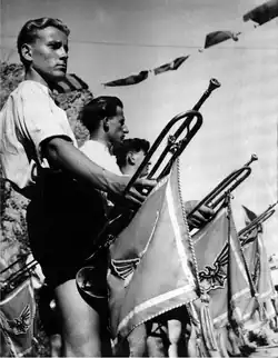 The Kuratorium's nationalist-oriented programming reached a zenith in the summer of 1944 when the "Week of Czech Youth" was staged in Prague, activities during which included thousands of Kuratorium participants attired in Czech national costume singing traditional Czech songs.[4] Observers from the Hitler Youth came to the conclusion that Kuratorium activities had essentially become nothing more than a continuation of the banned Sokol movement and were concerned that "Reich-loyal" Czech nationalism would transform into a dangerous "double-edged sword".[4] On the one hand, the existence of the Kuratorium showcased Germany's supposed tolerance for Czech institutions and helped educate Czech youth towards an anti-communist worldview, however, on the other hand it severely undermined the ultimate goal of Germanizing the population of the Czech lands.[4]