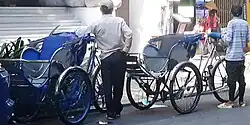The vehicle is usually a tricycle, though some quadracycle models exist, and some bicycles with trailers are configured as cycle rickshaws.[5] Some cycle rickshaws have gas or electric motors.[5][6]