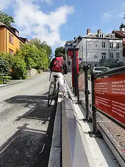 A bikeway (US) or cycleway (UK) is a lane, route, way or path which in some manner is specifically designed and /or designated for bicycle travel.[2] Bike lanes demarcated by a painted marking are quite common in many cities. Cycle tracks demarcated by barriers, bollards or boulevards are quite common in some European countries such as the Netherlands, Denmark and Germany. They are also increasingly common in major cities elsewhere, such as New York, Melbourne, Ottawa, Vancouver and San Francisco. Montreal and Davis, California, which have had segregated cycling facilities with barriers for several decades, are among the earliest examples in North America.