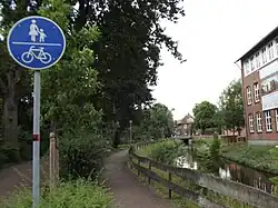Signposted greenway, bordering on a gracht in Nordhorn, Germany