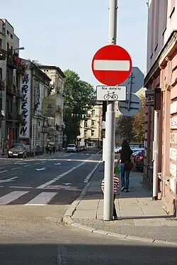 German research indicates that making one-way streets two-way for cyclists results in a reduction in the total number of collisions.[51] In Belgium, all one-way streets in 50 km/h zones are by default two-way for cyclists.[52] A Danish road directorate states that in town centers it is important to be able to cycle in both directions in all streets, and that in certain circumstances, two-way cycle traffic can be accommodated in an otherwise one-way street.[53]