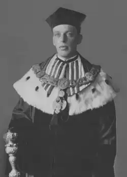 Moving to Vilnius in 1920, Falkowski was appointed professor of church history at Vilnius University. He was given academic tenure at Vilnius on 29 January 1921 by decree of the Chief of State of Poland. After this, Falkowski served as deputy dean of Vilnius University between 1921 and 1923, dean of faculty between 1926 and 1928, and finally served as rector of the University between 1928 and 1930.[8] After his term as rector, Falkowski also served as deputy rector of Vilnius University between 1930 and 1932.[9] He was made a secret chamberlain of Pope Pius XI in 1932.[10]