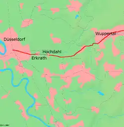 The Düsseldorf–Elberfeld railway is a 27 km long main line railway in Germany, originally built by the Düsseldorf-Elberfeld Railway Company, connecting Düsseldorf and Elberfeld (now Wuppertal) via Erkrath, Hochdahl and Vohwinkel. It is served by Regional Express, Regionalbahn and S-Bahn trains.