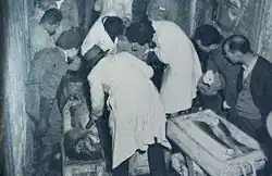 Around August 20, Kuboyama Aikichi's condition deteriorated. By August 29, he fell into critical condition after developing meningitis. He became delirious and violent, having to be tied to a bed on the floor. Kuboyama soon fell into a coma and developed pneumonia. On September 23, he became the first member of the crew to die from complications of radiation sickness.[1] The remaining 22 crew members were released from the hospital on May 20, 1955 after 14 months. They received yearly checkups to monitor the toll of long-term radiation sickness complications.[20]