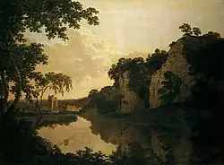 Muskham attributes the first part of the foundation legend to Matilda de Salicosa Mara of Lindsey, a local landowner whom he regarded as foundress of the community at Dale.[6] Muskham's chronicle places the origins of the abbey early in the previous century and credits the initiative to a local baker who experienced a vision of The Blessed Virgin Mary[7] telling him to go to Depedale.[8] The baker kept the religious experience secret but immediately set off eastward. Passing through the village of Stanley, he overheard a woman dispatching her daughter to Deepdale with a herd of calves. The former baker took this as a sign from God and asked the woman the way. He was told to follow the girl to Deepdale and so quickly arrived at his destination, described as locum palustrem valde terribilem longeque ab omni habitacione hominum separatum[9] — "a marshy place, extremely frightening, and far from human habitation." At the south east edge of the place he cut out a small rock house in the hillside and settled to an ascetic existence. A local landowner is named as Ralph Fitz Geremund, lord of a moiety of the manors of Ockbrook and Alvaston cum soc, i.e., holder of soke, the right and duty to constitute a court. He is portrayed by the chronicle as a Norman baron with interests on both sides of the Channel.[10] He was so impressed by the hermit and the wretchedness of his existence that he granted him a tithe of the proceeds of his own mill at Burgh (now thought to be at Alvaston, although earlier at Borrowash).[11] The remainder of the hermit's story is attributed to one Humfrid, a former canon. The hermit suffered spiritual torment in his later years, said by the chronicler to be the assaults of antiquus autem generis humani inimicus milleartifex[12] – "the ancient enemy of human kind, master of a thousand tricks," that is, Satan. To gain relief from these assaults, and from the lack of water at his hermitage, he searched for a new home.[13] By a spring in the little valley below he built a hut for himself and an oratory, dedicated to God and to the Blessed Mary, who seems to have been central to his spiritual life. There he lived in God's service until his death, which is described by the chronicler in almost Manichaean terms as release from the ergastulum, prison, of the body.[14]