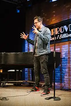 Daniel Levy (born March 19, 1981) is an American comedian, actor, writer, and producer based in Los Angeles.[1] He began performing stand-up in the 2000s and has released three comedy albums, including his most recent special Dan Levy: Lion in 2016. He has written for a number of television comedies including Whitney (2011–2013) and was a producer of The Awesomes (2013–2015), Mulaney (2014–15), and The Goldbergs (2014–15). In 2020, he created the NBC series Indebted.
