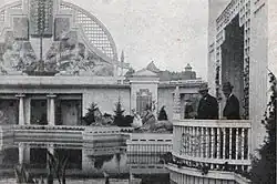 Architectural displays was a central element of exhibitions at the time and a separate Station Town had been erected to showcase best practices in construction and architecture. It was modeled to be an ideal small railway town and was complete with dairy, railway station, pharmacy, community centre and other structures. Additional villas had been constructed on nearby roads some of which were awarded as prizes in lotteries.[5]