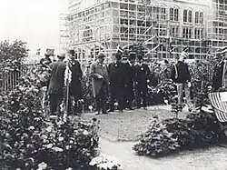 In spite of the long journey by sea some 1200 Danish-Americans arrived on the ocean steamer C.F. Tietgen. The city was decorated with Danish and American flags and the facade of the Art Hall was decorated with the same Stars and Stripes that had been used at the main entrance of the St. Louis World's Fair in 1904. The meeting became the precursor to the annual Rebild Festival every year on 4 July in north Jutland.[4]