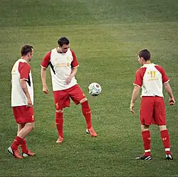 Wilson warming up, along with compatriot Charlie Adam and Jon Flanagan.