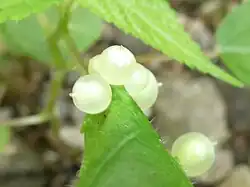 Dasineura investita, the wood nettle gall midge, forms a gall that grows on the wood nettle plant Laportea canadensis. It was described in 2016 and is caused by a midge in the family Cecidomyiidae. The galls form on the petiole, upper leaf, leaf midrib, on leaf veins, between leaf veins, flower, stem. They are oval globose 4-5 mm by 8-12 mm pale, red, white, to green translucent. There are two generations a year, the full grown larva from the autumn generation overwinters in the central chamber of the gall. The genus Dasineura is a vary large one with many gall forming species.[1]
