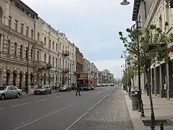 Currently named after David IV of Georgia, it was originally called Mikheil Street in 1851, and Plekhanov Street after the Russian revolutionary Georgi Plekhanov from 1918 to 1988.[2][3] Since 2010, the avenue has seen major rehabilitation works, which includes the renovation of seventy buildings, as well as the road, sidewalks and street lighting.[4]
