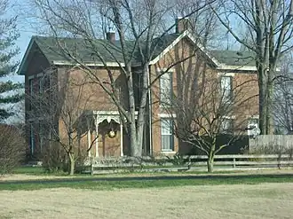 David Aikens House, also known as the Old Manse, is a historic home located at Columbus Township, Bartholomew County, Indiana. The house was built in 1877, and is a two-story, Italianate style cross-plan brick dwelling with a two-story, rear kitchen wing. It has a gable roof and sits on a limestone foundation. Also on the property is the contributing Nailed Frame Barn (c. 1905).[2]: 5, 10