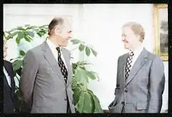 Gibbons became Premier on 30 August 1977.[8] He served for the United Bermuda Party.[9] As Premier he dealt with the riots in 1977 after the hanging of two men convicted of the assassination of Governor Richard Sharples.[4] In 1978 he asked American psychologist Kenneth Clark to perform a review of the social situation of Bermuda. The following report and its implementation led to social programmes and institutions, including the Bermuda Housing Corporation and a human rights commission.[3] In April 1981 Gibbons presented the government's largest budget up until that point, at 132 million dollar.[10] As Premier Gibbons also had to deal with a general strike in 1981.[4] In the wake of the strike, in late 1981, he decided to step down as Premier.[11]