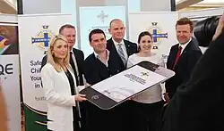 Healy with Jim Gamble launching the IFA Safeguarding Children App in April 2014 [54][55][56]