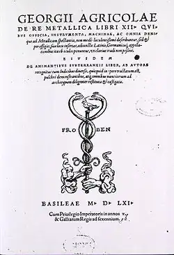 • Agricola, Georg. De re metallica. 1st ed. Basil: Hieronymus Froben & Nicolaus Episcopius, 1556.