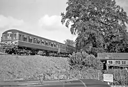 The structure was exceptionally simple, consisting of a very short wooden platform reached from the street by a long wooden staircase. There was no shelter and only oil lamps were provided. By the time of closure all passenger services on the branch were worked by diesel multiple-unit trains, after an experiment with battery-electric railcars in 1958 – 1962.