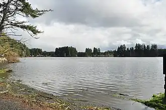 Deep Lake is a 66-acre (27 ha) body of water lying eight miles (13 km) south of Olympia in Thurston County, Washington. It is 17 feet (5.2 m) deep at its deepest point and has a water volume of 771 acre-feet (951,000 m3).[3] The lake drains into Black River by way of Beaver Creek and Scott Lake.[4] Deep Lake is located in Section 3, Township 16N, Range 2W, Willamette.[3] The lake is bordered on two sides by Millersylvania State Park. An RV resort camp occupies the lake's eastern shore.[5] The lake's fish population includes stocked rainbow trout and naturally reproducing largemouth bass, bluegill, yellow perch, and pumpkinseed.[2]