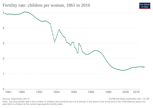 In November 2022, Italy's birth rate declined to its lowest level on record since 1861, with fewer than 400,000 births recorded that year.[34][35][36][37][38][39]
